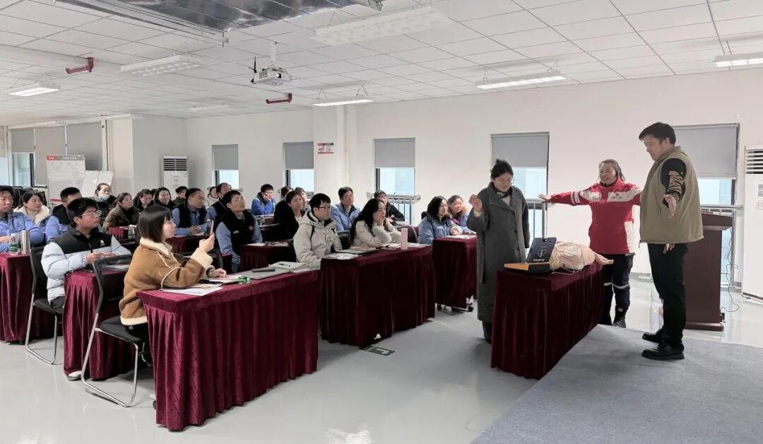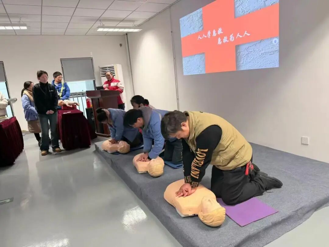 培训中,红十字会资深讲师结合企业生产实际,围绕心肺复苏(CPR)及AED使用等核心内容展开教学。借助真实案例讲解应急救护原则,以通俗易懂的语言拆解专业知识点,让员工听得懂、记得牢。在实操环节,大家分组利用模拟人、AED等器材反复练习,讲师逐一指导并纠正动作,着重讲解胸外按压力度、位置等关键细节,助力员工快速掌握标准化急救流程。