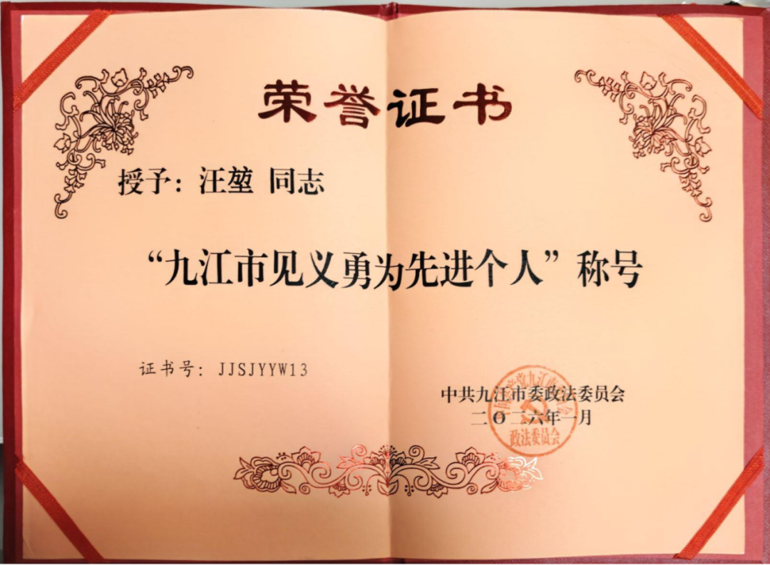 近日,中共九江市委政法委正式授予九江市首例造血干细胞捐献者汪堃“九江市见义勇为先进个人”称号,以表彰他14年间两度捐献“生命种子”挽救白血病患者、长期投身人道公益的大爱之举。这位中铁九桥的桥梁安全管理者,用跨越十余年的坚守,在浔城大地上书写了“人道、博爱、奉献”的动人篇章。